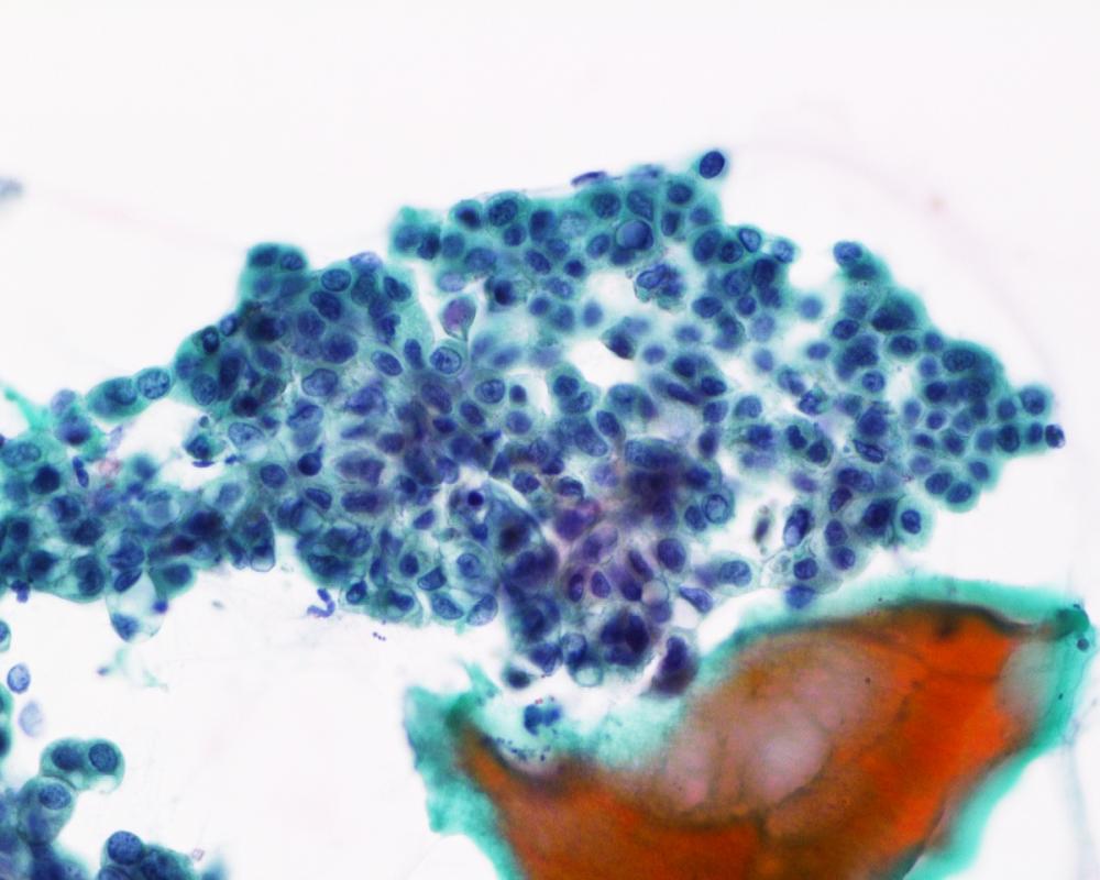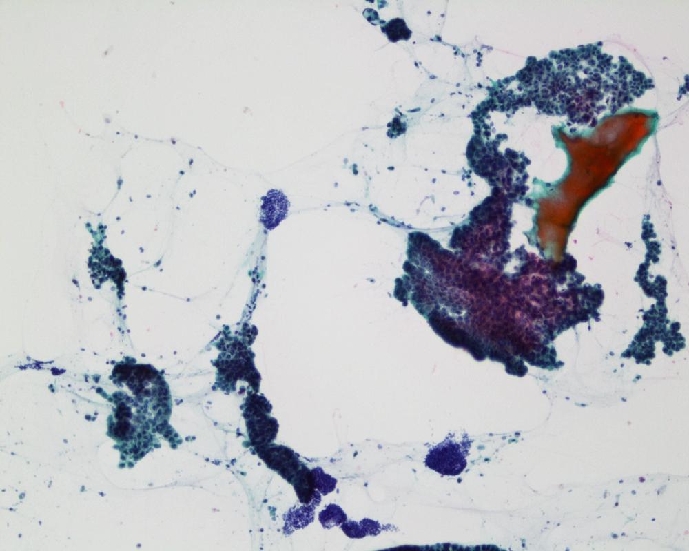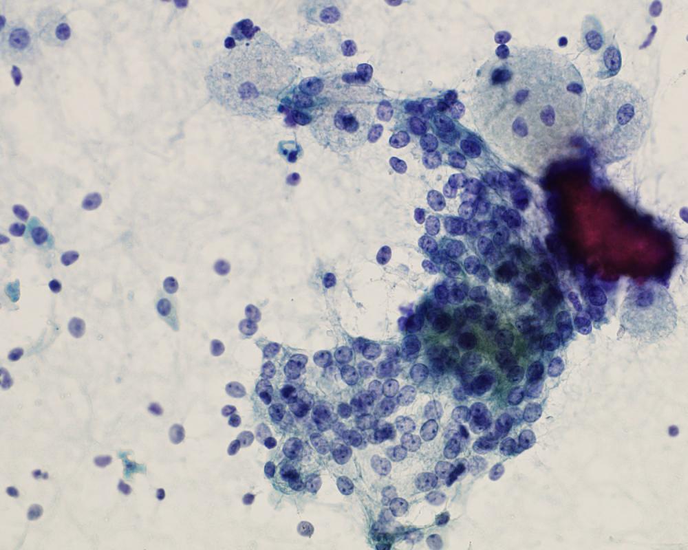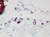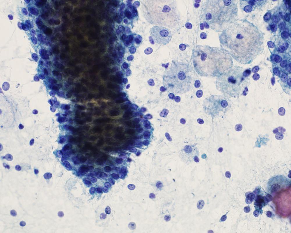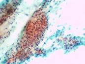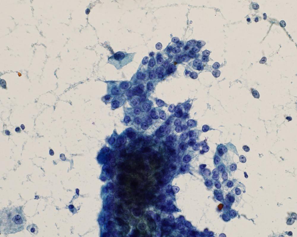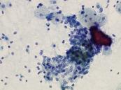 刺吸引検体より作製された標本を提示する。