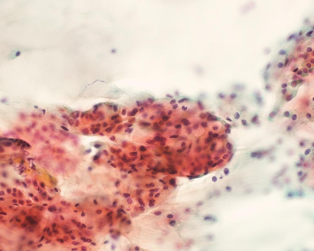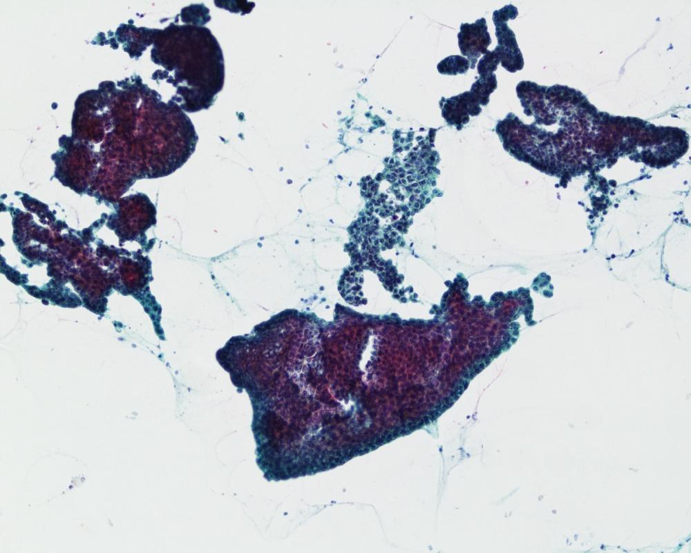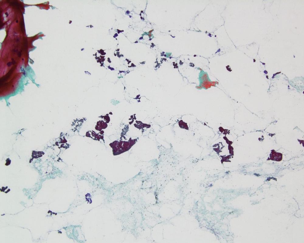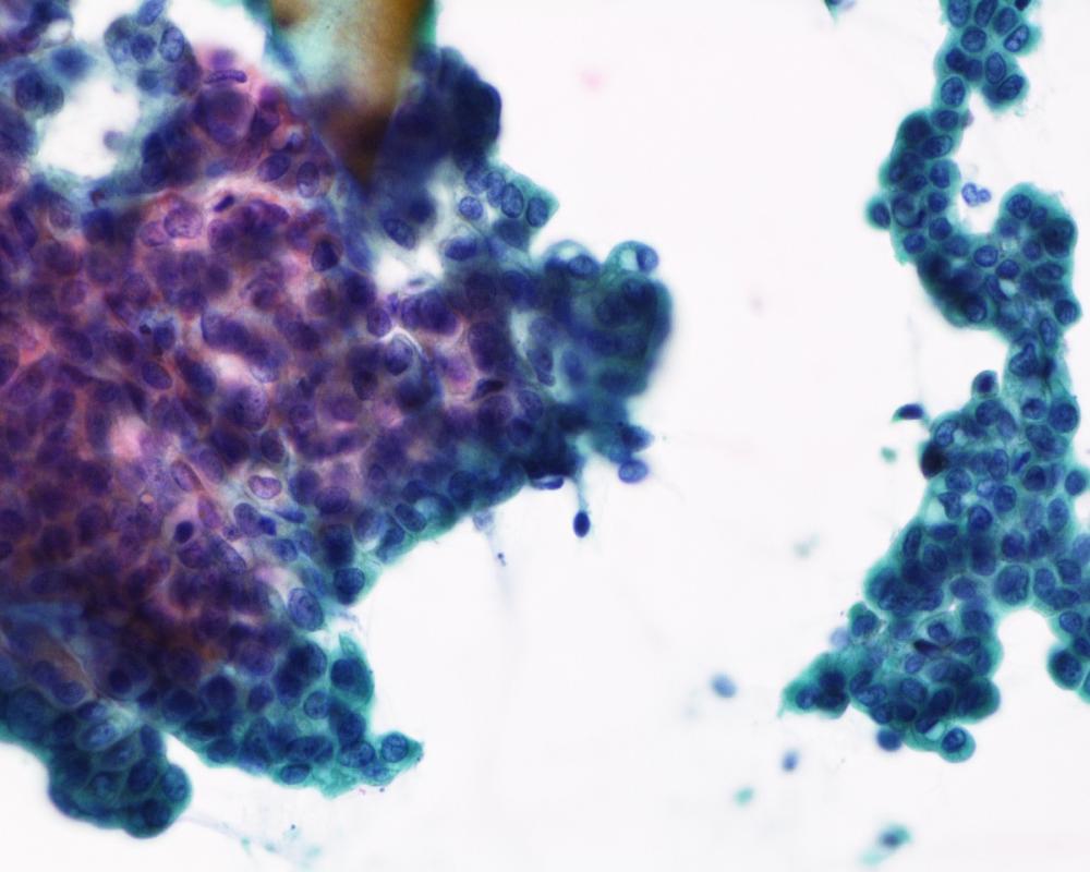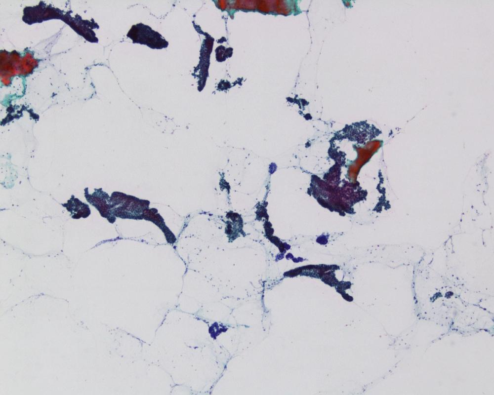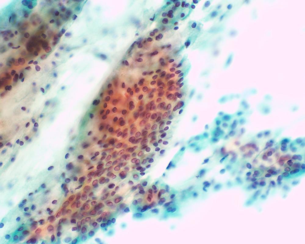 刺吸引検体より作製された標本を提示する。